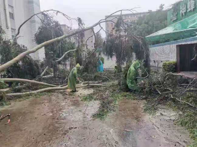 受台风“卢碧”影响,福州出现强降雨,福州市气象台8月6日12时35分变更发布暴雨红色预警信号。受强降雨影响,金山校区校园部分区域出现积水、树木倒伏、小范围滑坡。汛情就是命令,安全就是责任,后勤管理处闻“汛”而动,全力以赴,防抗“卢碧”,维护校园安定。