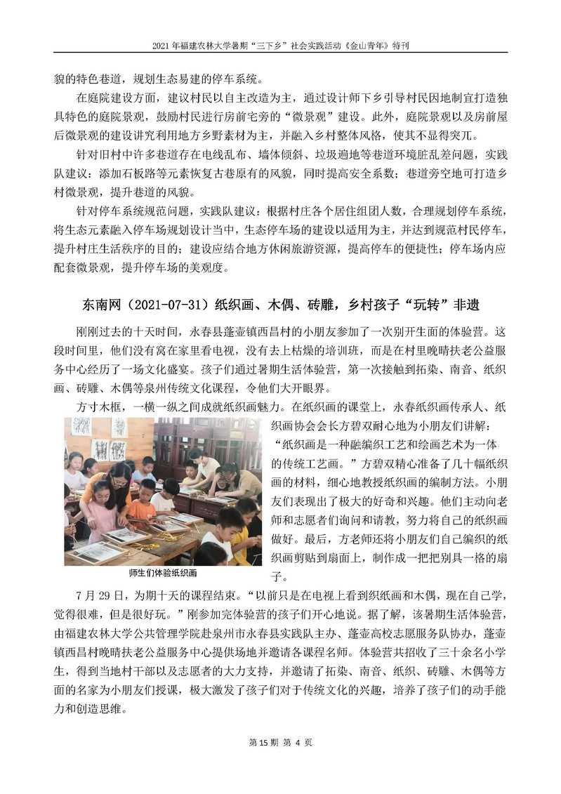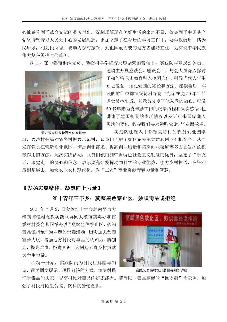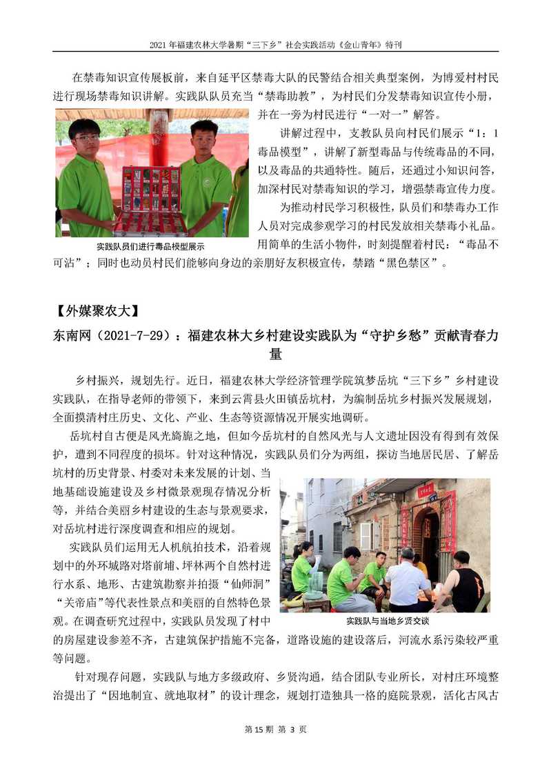 2021年开云网页版暑期“三下乡”社会实践活动《金山青年》特刊第十五期