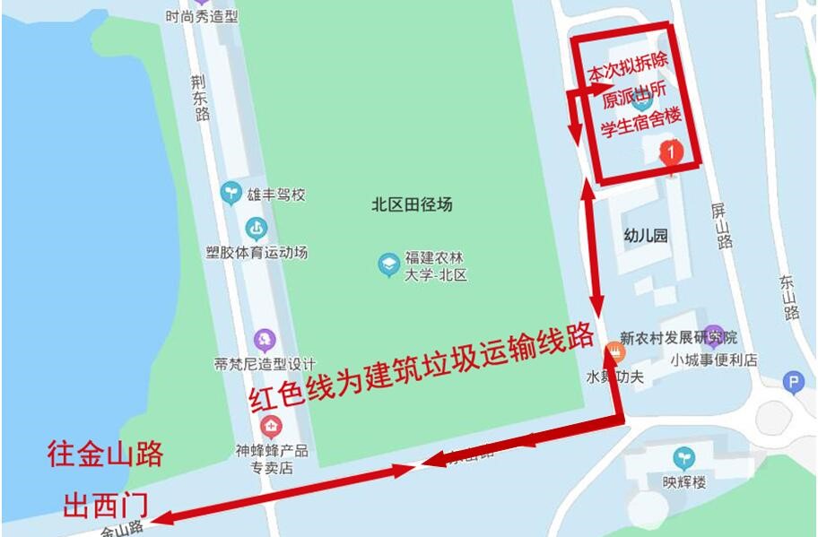其中,8月23日--31日拆除学生宿舍(原派出所)楼。在拆除施工和砖渣运输期间,幼儿园路段(新农村发展研究院—动科学院楼)禁止机动车和非机动车通行,由此给师生出行造成的不便和影响,敬请理解和支持!