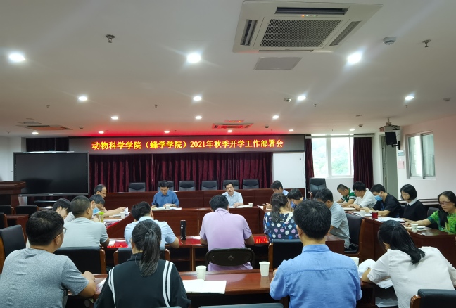 8月23日下午,动物科学学院(蜂学学院)在学院会议室召开2021年秋季开学工作部署会。学院领导班子成员、各教学系负责人、党支部书记、科级干部和辅导员参加了会议。会议由学院党委书记黄毅军主持。