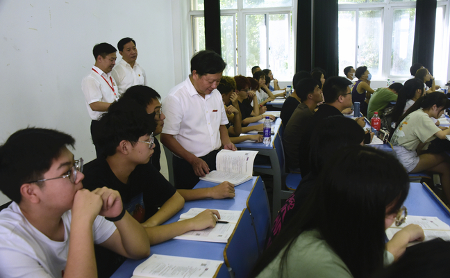 8月30日上午,校长兰思仁、校党委副书记曾华平深入课堂,对开学第一天的教学工作及课堂情况进行检查并随堂听课。