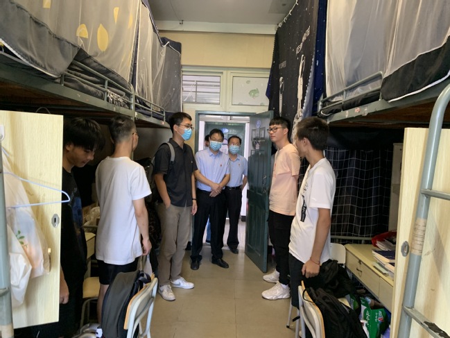 学生到校后,学院积极开展“安全第一课”教育,学院党委书记曾起郁、党委副书记郑龙章及辅导员深入东苑、南区学生宿舍、学生自习室看望返校学生。曾起郁细心了解同学们的返校情况,关心同学们的需求,嘱咐同学们尽快调整状态以适应新学期的校园生活,强调同学们要注重日常的疫情防控工作要求,保持良好的宿舍卫生,注重防范宿舍安全隐患与防范网络诈骗,营造良好的宿舍氛围;勉励同学们认真学习习近平总书记“七一”重要讲话精神,志存高远,勤奋刻苦,以崭新的精神面貌迎接新学期。学院辅导员结合当前疫情防控要求,校园疫情防控相关要求,对同学们进出校园管理、请销假制度、日常体温监测、每日健康打卡、晚归打卡及宿舍管理等要求进行强调。