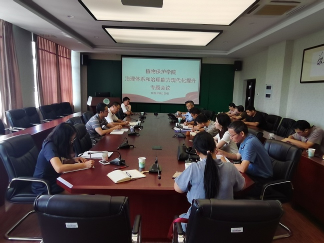 8月29日,植物保护学院在博学楼703会议室召开学院治理体系和治理能力现代化提升专题会议。学院党委书记林栋主持会议,学院党政领导班子成员、教工党支部书记、系主任、科室负责人和全体辅导员参加会议。
