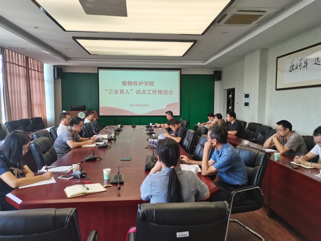 8月29日上午,植物保护学院在博学楼703召开“三全育人”综合改革试点建设工作推进会。会议由学院党委书记林栋主持,学院党政领导班子成员、教工党支部书记、系主任、科室负责人和全体辅导员参加会议。