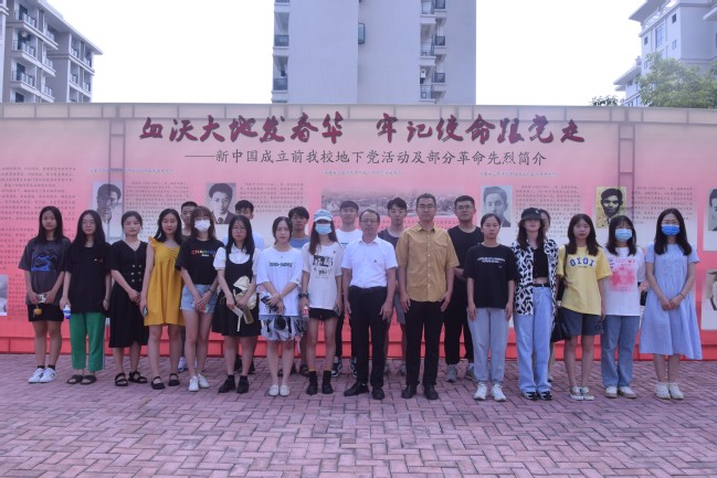 为深入学习习近平总书记在庆祝中国共产党成立100周年大会上的重要讲话精神,深化党史学习教育,9月4日上午,艺术学院园林学院党委副书记、关工委主任陈建辉带领辅导员、学生党员、学生干部、入党积极分子等在旗山校区参观“血沃大地发春华,牢记使命跟党走”——新中国成立前我校地下党活动及部分革命先烈简介主题展。