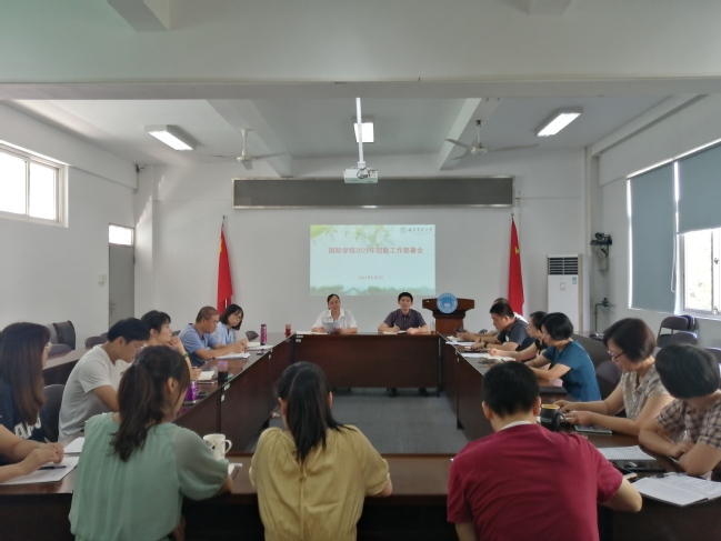 9月6日下午,国际学院在明北附303会议室召开2021年迎新工作部署会。学院领导班子成员、全体政工干部和行政人员参加会议,会议由学院党委副书记刘敏主持。