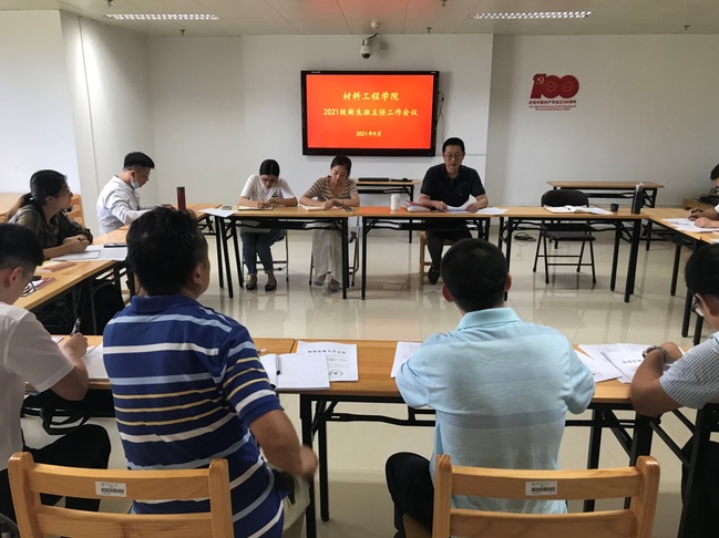 9月9日中午,材料工程学院在综合楼423室召开2021级新生班主任工作会议,全体新生班主任、辅导员参加会议。学院党委副书记苏开敏主持会议。