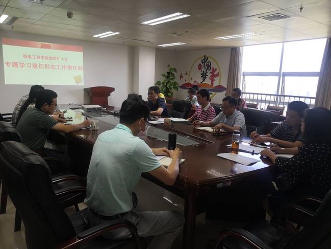 9月14日上午,机电工程学院召开党委(扩大)会议,专题学习意识形态工作责任制,会议由学院党委书记池有忠主持,学院党委委员、党支部书记20余人参加了会议。