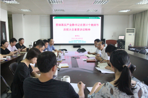 9月9日,教务处在明德楼312会议室召开贯彻落实校党委书记严金静在庆祝第37个教师节大会讲话的专题会议。