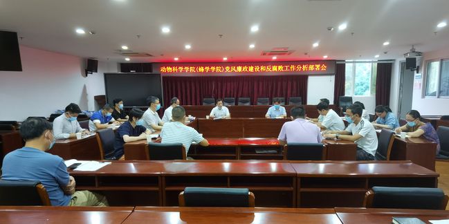 9月18日下午,动物科学学院党委在学院会议室召开党风廉政建设和反腐败工作分析部署会,就中秋国庆期间师生廉洁自律工作再强调再部署再落实。学院党委委员、科级干部、教工党支部书记和纪检委员等参加。会议由学院党委书记黄毅军主持。