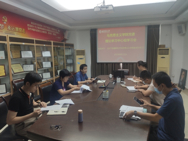 9月22日上午,马克思主义学院党委理论学习中心组召开专题学习会,学习中共中央办公厅印发的《关于加强新时代马克思主义学院建设的意见》(以下简称《意见》)精神,学院党委理论学习中心组成员、科级干部参加会议,学院党委书记雷国铨主持会议。
