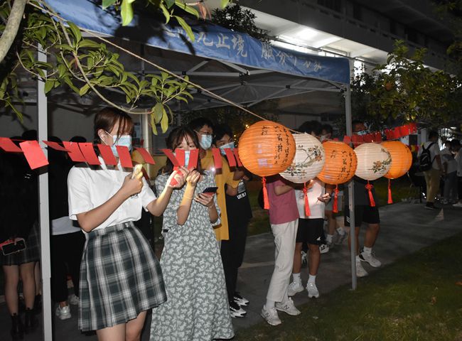 在“浓情中秋,灯笼映月”活动中,同学们在各式各样的灯谜下一起开动脑筋,体会中秋灯谜的传统文化风俗;伴随着声声的摇色声,同学们“携手庆团圆,博饼闹中秋”,力争成为幸运的“进士”,一解同学们的思乡之情,欢乐融融,一起博出精彩。