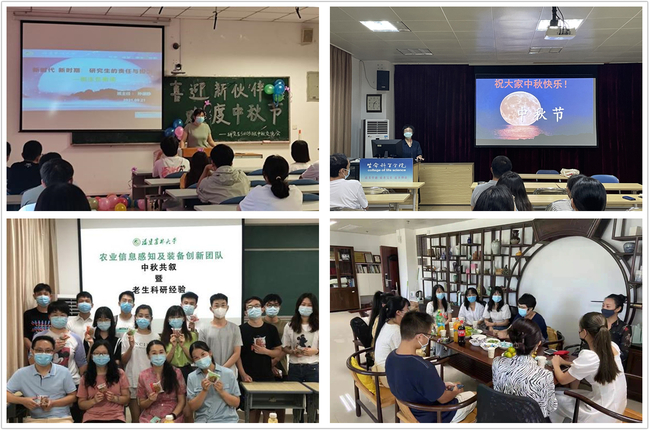 生命科学学院、林学院、机电工程学院和资源与环境学院等开展了形式多样的学术交流活动,其中包括学术报告、举办知识竞答、交流科研经验、开展实验室安全教育、分享月饼等多个环节,为留校学子提供了互相学习的机会,更帮助他们感受到欢乐友爱的节日氛围。
