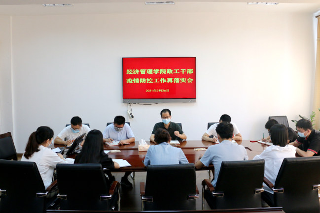 9月26日,经济管理学院召开政工干部会议,深入贯彻习近平总书记关于新冠疫情防控工作的重要讲话指示精神,全面落实校党委常委会再研究再部署新冠肺炎疫情防控工作要求,对疫情防控工作再细化再推进再落实。