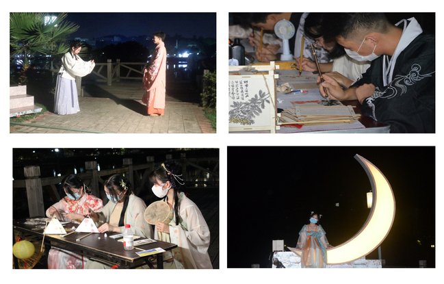 中秋佳节当晚,在积极做好防疫工作的前提下,由学院承办的“花好月圆夜,农林美当时”沉浸式校园文化中秋游园活动在春晖桥上举办,本次游园活动给同学们带来了《春江花月夜》古筝合奏、民舞独舞,趣味灯笼描绘表演、“文化博饼、趣味灯谜”游戏体验、书法彩绘书信祝福、“以茶会友”的茶艺展示等为同学们带来了一站线式的游园体验,共同度过了花好月圆之夜。