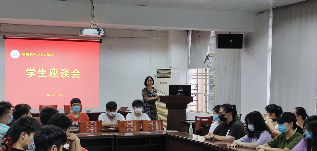 9月23日,农学院在302会议室召开本科2020级学生座谈会,院党委副书记林素文、辅导员郑晓阳和部分本科2020级学生参会。
