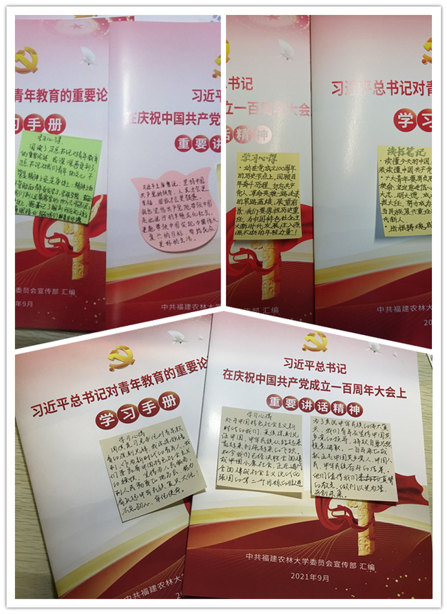 大家纷纷表示,习近平总书记的重要讲话是一篇马克思主义的纲领性文献,系统回顾了我们党开辟的伟大道路、创造的伟大事业、取得的伟大成就,深刻阐述了伟大建党精神,全面总结了百年建党经验,思想深刻、内涵丰富、振奋人心,是全党在新的历史条件下进行具有许多新的历史特点伟大斗争的政治宣言,对于我们在新的征程上传承红色基因、践行初心使命、创造新的历史伟业,具有十分重大的指导意义。习近平总书记围绕青年工作发表的一系列重要论述,立意高远,内涵丰富,思想深刻,阐明了新形势下青年工作的重大理论和实践问题,指明了当代青年的历史使命和成长道路,对于准确把握青年工作的基本要求和重点任务,引导青年树立远大理想、热爱伟大祖国、担当时代责任、勇于砥砺奋斗、练就过硬本领、锤炼品德修为,激励和动员广大青年为实现“两个一百年”奋斗目标、实现中华民族伟大复兴的中国梦而勤奋学习、努力工作,具有十分重要的意义。学习学校革命先辈和先进人物事迹,感到身边的典型可亲、可敬、可信,未来将对标先进人物事迹,传承农林大红色基因,赓续农林大红色血脉,为学校建设农林特色鲜明的全国一流大学不懈奋斗,为乡村振兴、农业农村现代化贡献力量,为全面建成社会主义现代化强国而努力奋斗!