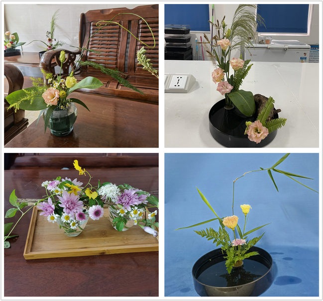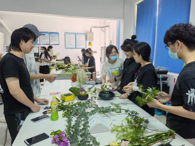 通过这次生动有趣的实验课,同学们不仅掌握了中国传统插花制作的基本原理,更在自由选择花器具,灵活表达创意等方面有所突破,将普通的课程实验变成了展览性试验。同学们现场制作的每件作品都经过巧妙的构思,一件件精美的插花作品向人们传递着“懂园艺、爱生活”的理念,为疫情期间紧张的校园生活增添了一抹情趣!