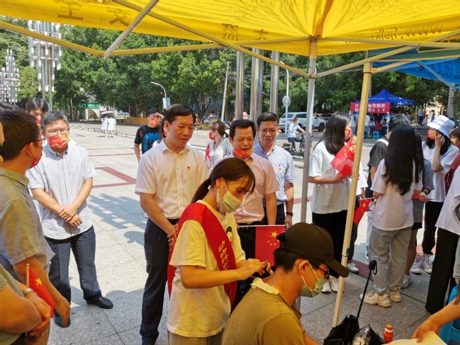 10月1日-2日,动物科学学院(蜂学学院)在拓荒广场、北区田径场、篮球场、学院会议室等地开展“请党放心,强国有我”国庆系列活动,热烈庆祝中华人民共和国成立72周年,丰富校园文化生活,让同学们过一个快乐、健康、充实的国庆假期。期间,校党委副书记曾华平、学工部部长陈月霄、校团委书记林平、保卫部部长肖知亮等莅临指导“快闪”“义诊”活动,学院领导班子成员黄毅军、徐通明、陈大福深入活动现场,与同学们欢度国庆。