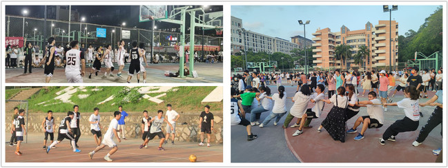 精彩体育比赛,强健学子体魄。10月1日、2日傍晚,学院在北区田径场组织了师生篮球赛、班级拔河赛等体育赛事。现场热闹非凡,加油声、呐喊声、欢呼声此起彼伏。师生同台竞技,班级各显神通,秉持“友谊第一,比赛第二”的体育精神,在挥汗如雨的赛场上洋溢着蓬勃朝气和青春活力。酣畅淋漓的体育运动,不仅强身健体、增进师生感情、增强班级凝聚力,更是五育并举的行动写照,为学生德智体美劳全面发展创造机会、搭建平台。