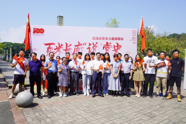 在中华名特优植物园,金山学院开展游园会,园艺学院开展“歌唱祖国,青春飞扬”“重走长征路,奋勇新征程”等活动,通过沉浸式体验的党史答题形式,引导青年学生弘扬长征精神,走好新时代的长征路,用一首首红色歌曲表达了对祖国繁荣富强的自豪之情与深深热爱的赤子之心。