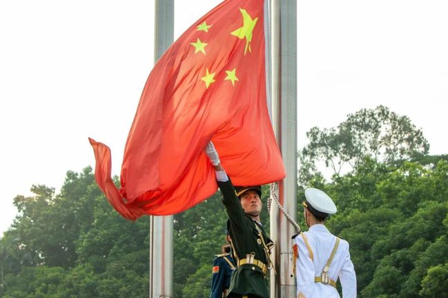 10月1日上午7时,校大学生国旗护卫队踏着整齐划一的步伐护卫国旗进场,伴随着雄壮的国歌声,五星红旗冉冉升起,不少师生自发前往北区田径场观礼,向伟大祖国致敬献礼。