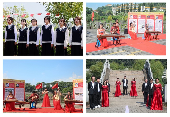 在春晖桥,公共管理学院、校大学生艺术团开展“回望百年路,砥砺新征程” 沉浸式党史主题游园会,通过展板、影音、书文画作、诗歌朗诵、情景表演、乐器演奏、党史答题等,移步换景,全过程、全景式展现1921-2021中国共产党波澜壮阔的百年历程,绘制出中国共产党开天辟地、改天换地、惊天动地的历史画卷。