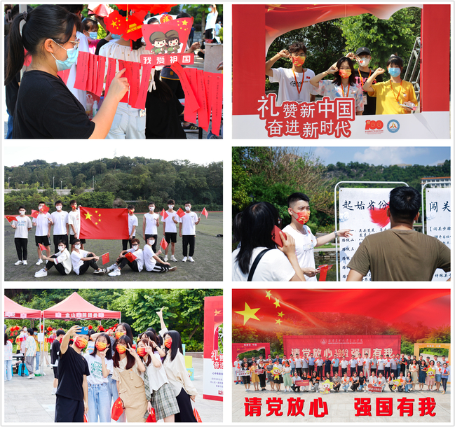 与此同时,各系团学也积极开展各项专题活动,营造国庆节氛围。经济与管理系开展“礼赞建党百年,喜迎国庆佳节”主题作品征集活动,用一幅幅画卷讴歌党、讴歌祖国、讴歌人民;工程技术系在中华园开展“建党百年忆征程 同心奋进举国庆”党史国情知识户外闯关活动,引导师生在答题闯关中牢记光辉历史;信息与机电工程系通过开展“我与国旗合张影”、荧光夜跑运动等活动,从行动上彰显广大学生为祖国发展奉献自己青春力量的决心,抒发爱国情怀。