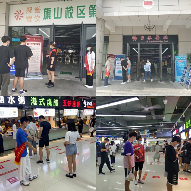 “请党放心,抗疫有我”食堂秩序维护