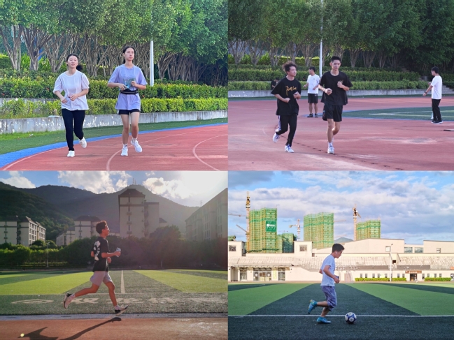 同学在操场进行早锻炼