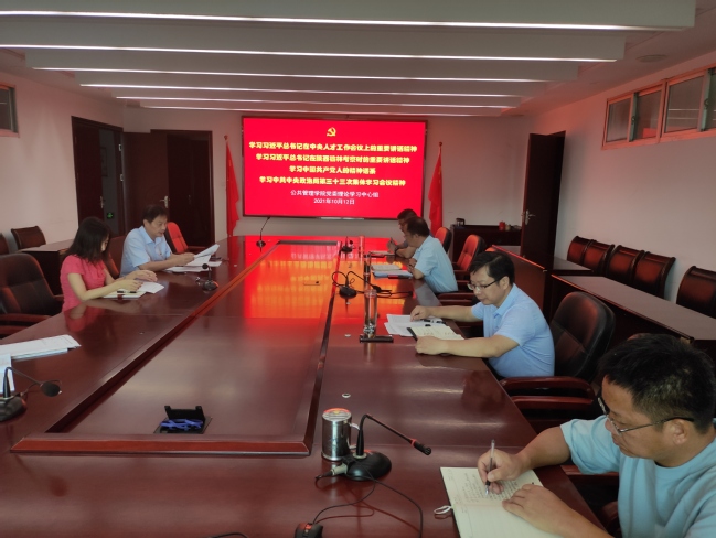 10月12日上午,公共管理学院党委理论中心组专题学习中国共产党人的精神谱系、习近平总书记在中央人才工作会议上的重要讲话精神、中共中央政治局第三十三次集体学习会议精神以及习近平总书记在陕西榆林考察时的重要讲话精神,学院理论中心组成员参加学习,院党委书记曾起郁主持会议。