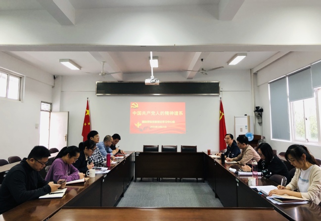 10月21日下午,国际学院党委理论学习中心组在明北附303会议室召开会议,专题学习研讨中国共产党人的精神谱系。院党委书记张华英主持会议,中心组成员、辅导员参加学习。