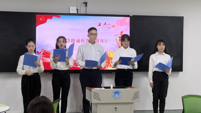 会议在庄严的国歌中拉开帷幕,与会同学们共同回顾了入学以来参加学院先进人物引领教育活动的学习情况,各班级的新生代表结合自身实际,畅谈在教育活动中获得的心得体会,学生代表饱含深情的诗朗诵《青年》将本次活动推上了高潮。