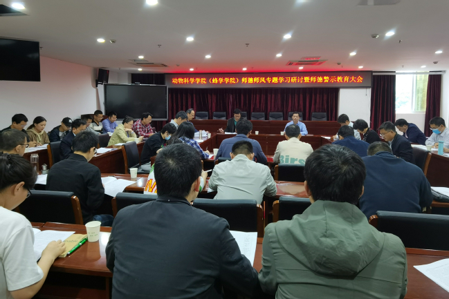 10月28日下午,动物科学学院(蜂学学院)在学院会议室召开师德师风专题学习研讨暨师德警示教育大会。学院领导班子成员、党委委员、各教学系(实验室)负责人、教工党支部书记、科级干部和近两年来新进教师等参加。会议由学院党委书记黄毅军主持。