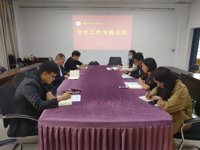 10月29日,农学院在学院三楼会议室召开学生工作专题会议,院党委书记洪诚,副书记林素文及全体辅导员出席会议。