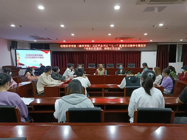 11月3日下午,动物科学学院(蜂学学院)于新圣农楼七楼大会议室举办“传承红色基因,赓续红色血脉”主题座谈会。校关工委副主任林文钦,马燕梅副教授及42名学生代表参会。座谈会由院团委副书记吴元华主持。