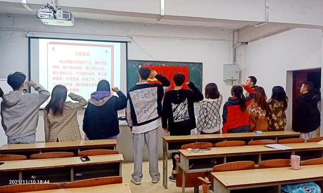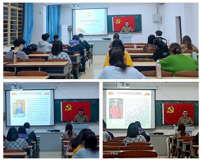 11月10日晚,计算机与信息学院绿伞志愿服务队党支部在计信大楼208教室举行学习潘东升和孙丽美同志事迹报告会暨重温入党誓词仪式。绿伞党支部正式党员、预备党员、2021级新生代表共同参加了此次党日活动。