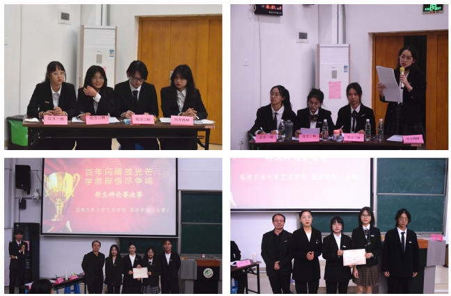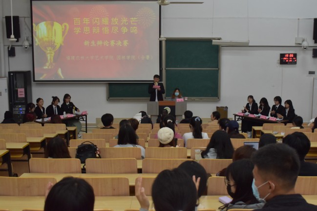 11月11日晚,艺术学院园林学院于旗山校区教学楼100教室举办“百年闪耀放光芒学思辩悟齐争鸣”新生辩论赛决赛。本次比赛由校辩论队陈楠、许鑫杰,机电工程学院辩论队宁裕铭担任评委,学院党委副书记陈建辉,辅导员马端山、王晓娴、季平及学院百余位同学到场观看。