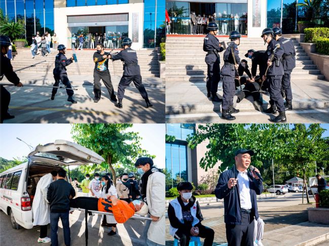 武装部(保卫处)治安科科长周金聪就校园反恐防暴特点,反恐防暴的重要性做认真的解读,对如何应对遇暴恐袭击,以及当遇暴恐袭时如何逃生疏散自救做了认真细致的讲解。