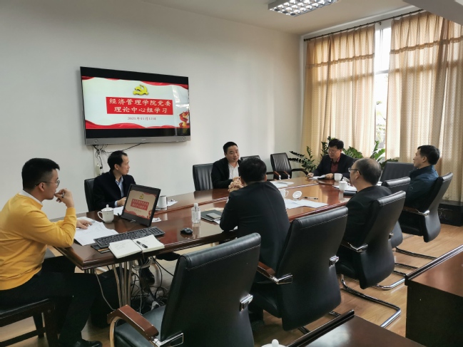 11月12日下午,经济管理学院党委理论学习中心组专题学习研讨党的十九届六中全会精神。会议由院党委书记张开晃主持,院党委理论中心组成员参会。