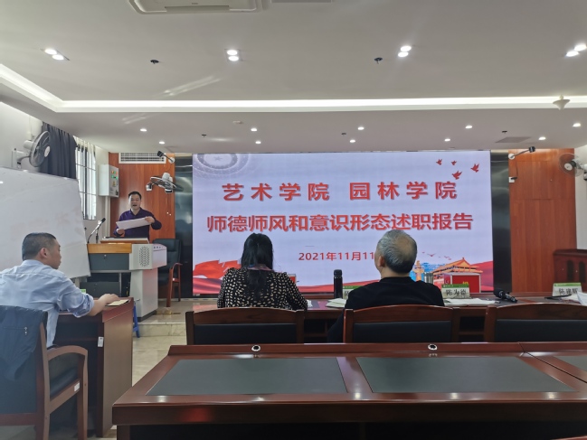11月12日,艺术学院园林学院党委召开教职工会议,进行师德师风和意识形态测评、开展保密培训教育,并与学习潘东升同志先进事迹相结合,要求全体教师要学习潘东升同志始终不忘初心、牢记使命,全心向党、全心为民,勤勉敬业、恪尽职守的崇高精神,引导教师要牢牢把握立德树人根本任务,进一步明确教师职业行为的基本规范。通过保密培训教育,进一步引导教师以案为鉴、以案明纪,努力践行“四有好老师”标准。