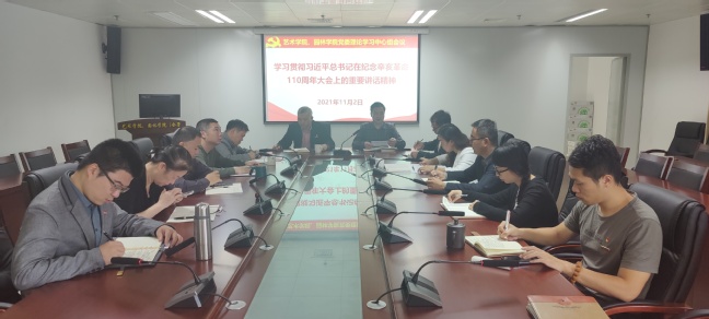 11月3日,艺术学院园林学院党委书记陈为德主持召开学院党委理论学习中心组扩大会议,传达学习习近平总书记在纪念辛亥革命110周年大会上的重要讲话精神,学习“时代楷模”孙丽美同志、“全省优秀共产党员”潘东升同志的先进事迹,会议要求全院干部、师生要认真学习和弘扬孙中山先生等革命先驱为振兴中华而矢志不渝的崇高精神,弘扬伟大建党精神,坚持社会主义办学方向,贯彻落实党的教育方针;要学习先进模范的事迹,以孙丽美同志、潘东升同志为榜样,立足岗位,敢于担当作为,不忘立德树人初心,牢记为党育人、为国育才使命,为党的教育事业贡献力量。