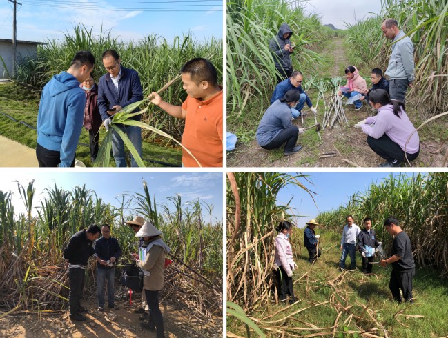 11月7-14日,国家甘蔗工程技术研究中心副主任、国家糖料体系岗位专家高三基研究员率团队成员一行4人前往广西崇左、来宾、南宁、北海等蔗区指导生产,到国家糖料体系综合试验站、来宾市国家现代农业产业园、洋浦南华糖业集团、南宁东亚糖业集团、广西南亚所等单位甘蔗生产基地,深入田间地头现场指导甘蔗病害虫识别和防治工作。期间,专家团队还分别与洋浦南华糖业集团下属单位原料发展部、隆安洋浦农业科技有限公司座谈,讨论如何在甘蔗新品种选育和推广、全程机械化实施和病虫害绿色防控等方面建立更加紧密的合作关系,助力广西甘蔗糖业高质量发展。