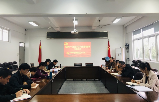 11月16日下午,国际学院党委在明北附303召开理论学习中心组(扩大)会议,专题学习党的十九届六中全会精神。院党委书记张华英主持学习会,理论学习中心组成员、师生党支部书记参加会议。