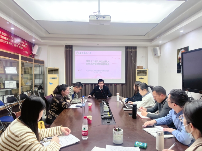 最后,罗贤宇结合《中国共产党第十九届中央委员会第六次全体会议公报》和《中共中央关于党的百年奋斗重大成就和历史经验的决议》等进行了解读,强调教研部老师要在学习宣传阐释党的十九届六中全会精神上下功夫,要撰写一批高质量理论阐释文章,并不断创新教学方法,推动党的十九届六中全会精神进教材、进课堂、进学生头脑。