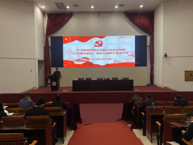 11月18日下午,安溪校区·安溪茶学院党委组织开展学习贯彻党的十九届六中全会精神主题讲座,由校区·学院党委书记连文主讲,全体教职工参加学习。