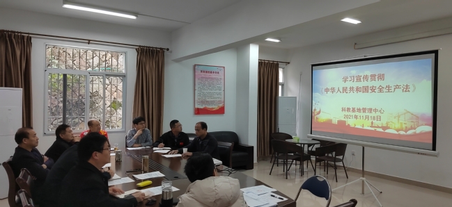 11月18日下午,科教基地管理中心召开安全教育会议,专题学习新《安全生产法》,并就2021年秋季校园安全隐患排查整治工作再强调再部署。基地管理中心全体在校人员参加会议。