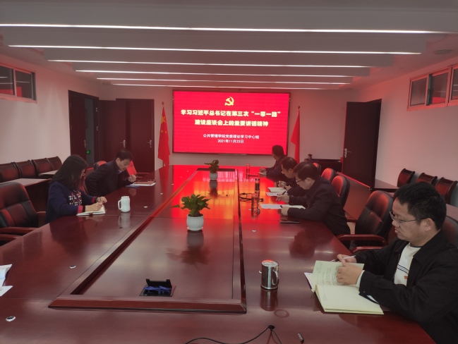 11月23日,公共管理学院党委理论学习中心组专题学习习近平总书记在第三次“一带一路”建设座谈会上的重要讲话精神,学院党委书记曾起郁主持会议。