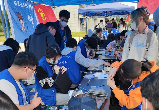 活动吸引了许多同学前来驻足咨询,大家纷纷将故障电脑拿过来请“e修哥”帮忙维修,“e修哥”认真负责地登记电脑的相关信息,利用自身的专业优势,积极为同学们排疑解难,解决了电脑积灰、电脑黑屏、蓝屏、系统卡顿等问题,同时还不忘为大家科普计算机相关知识,活动现场如火如荼。经过了一天的努力,“e修哥”共排除故障电脑96台,得到了同学们的一致好评,纷纷表示会将学到的维修小技巧运用到生活中,将电脑知识普及给亲友们。