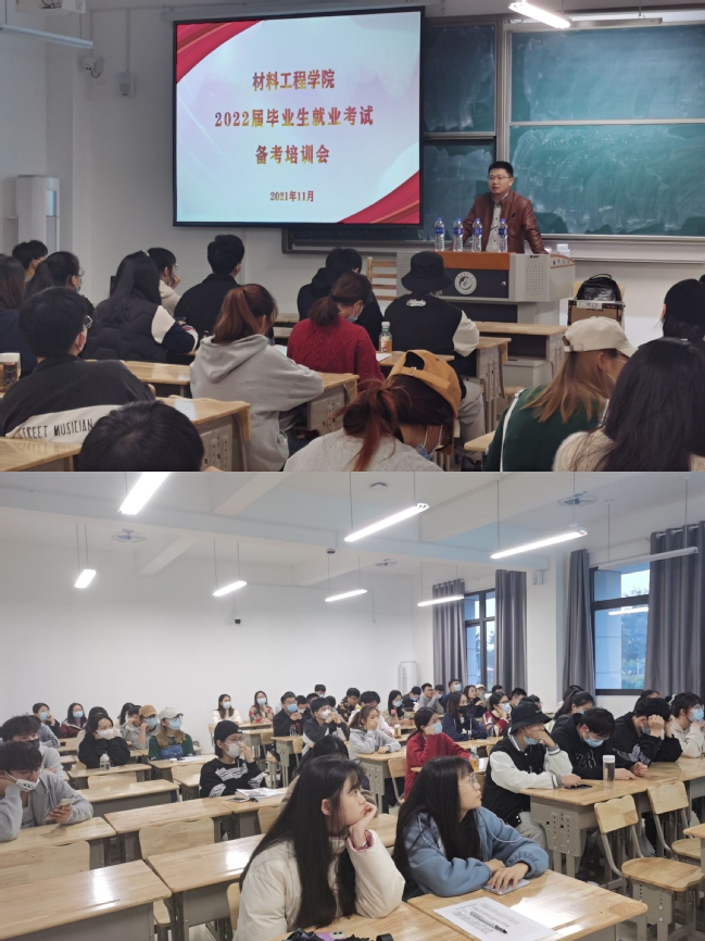 近日,材料工程学院在旗山教学实验楼101举办2022届毕业生就业考试备考培训会,由学院辅导员郭炳春老师主讲,旗山校区50余名拟参与就业考试的同学参加培训。